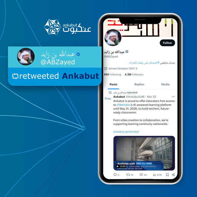 @AnkabutUAE Discover how Ankabut & WeVideo are driving the future of EdTech in Gulf News. We’re building a smarter, more connected knowledge ecosystem across the UAE & GCC. Read more: https://t.co/jzld5Z0t39 #EdTech #UAE #Ankabut #DigitalTransformatigulfnews.com/amp/story/gn-f…39 #EdTech #UAE #Ankabut #DigitalTransformatiolc